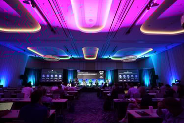 Comprehensive AV production for main conference sessions, professional audio, lighting, and seamless show control for keynote presentations.