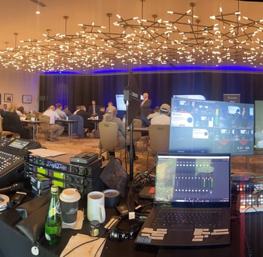 Professional livestreaming solutions for corporate announcements, public meetings, and conferences with multi-camera production. Broadcast via Zoom, Teams, Vimeo and others.